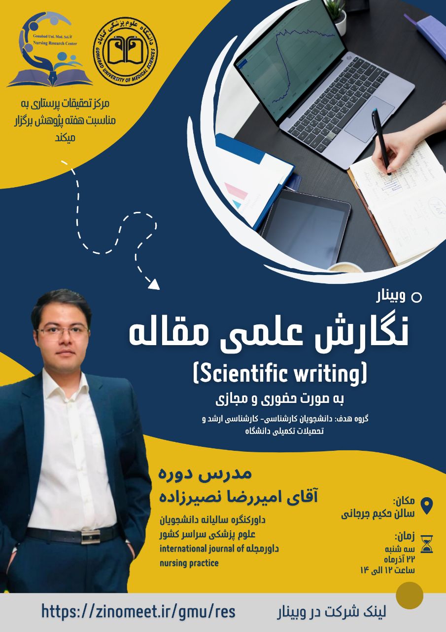 4 نگارش علمی مقاله (به صورت حضوری و مجازی) آقای امیر رضا نصیر زاده  1402/09/22 دانشجویان کارشناسی و ارشد  پوستر