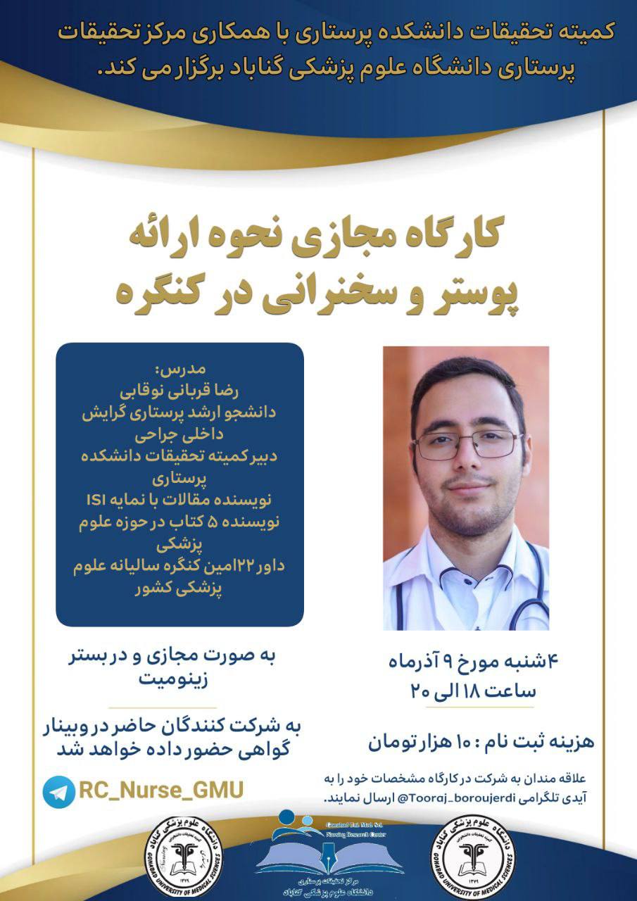 3 کارگاه مچازی نحوه ارائه پوستر و سخنرانی در کنگره  آقای رضا قربانی  --------- دانشجویان و پژوهشگران  پوستر